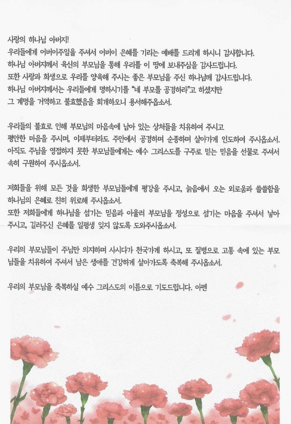 부모님을 위한 공동 축복기도