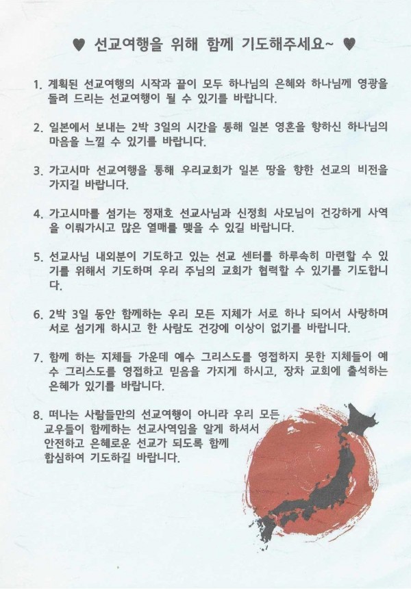 선교여행을 위한 기도